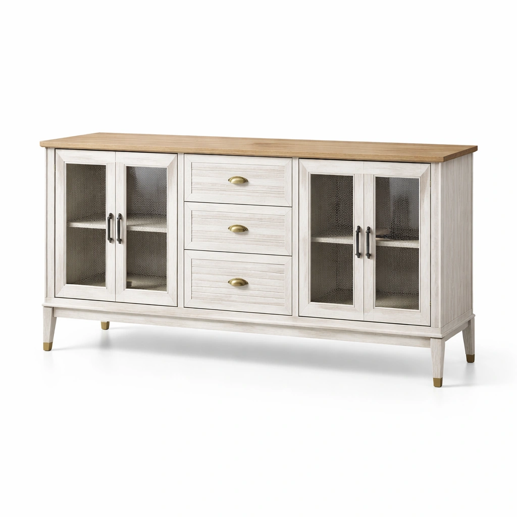 Material principal del aparador: madera maciza con superficie de chapa de madera. Los accesorios son de metal.